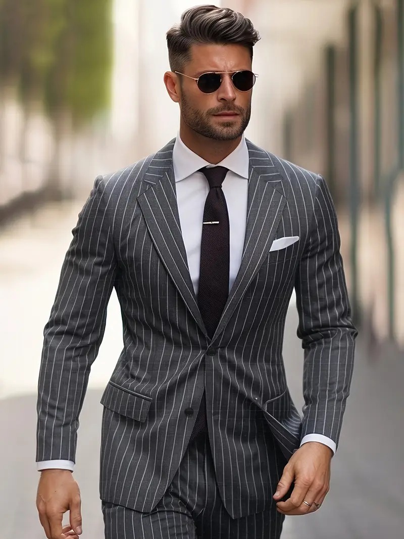 The Professional Striped Suit Set combines sophistication with a sleek, professional look. Featuring a long sleeve blazer and dress pants, this set is made from polyester and designed with a non-stretch fabric for a structured and polished fit.